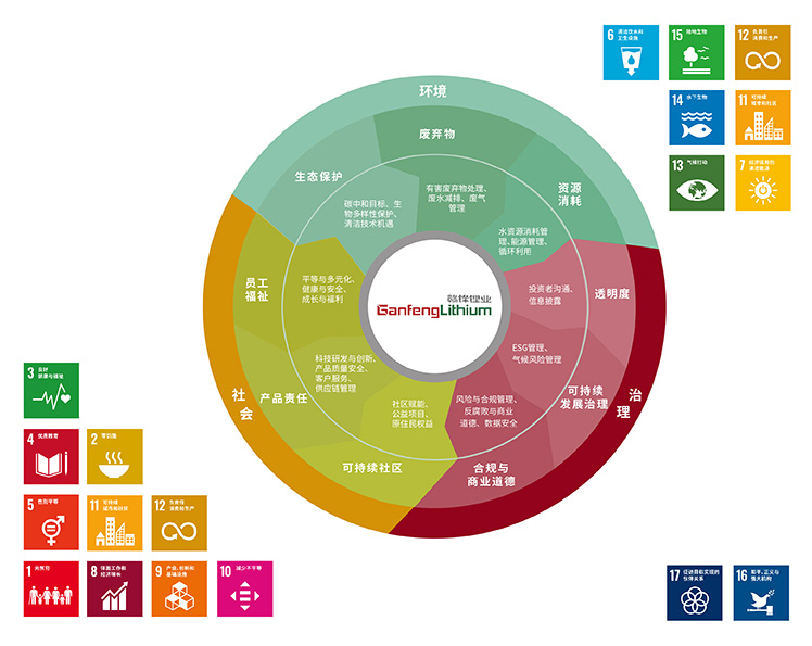 赣锋锂业深耕新能源产业20余载,始终坚持走可持续发展道路。既保证在生产过程中对环境和人体友好,也保证产品能够应对全球气候变化,助力全球能源转型。赣锋可持续发展画像从产品、生产、社会三个角度分别阐述赣锋在可持续发展方面承担的责任,积极推进落实可持续发展各项目标。